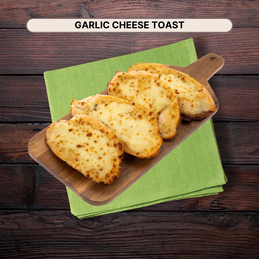 Indulge in our Garlic Cheese Toast, featuring garlic bread topped with melted cheese. A deliciously crispy and savory treat, perfect as a side or a satisfying snack with a rich garlic and cheesy flavor in every bite.